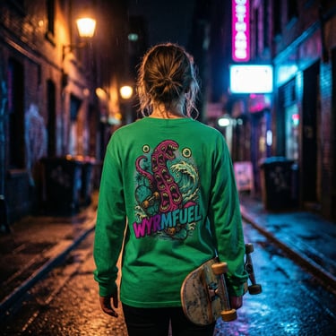 Wyrmfuel is a streetwear cult forged in the toxic tide between punk rebellion, skate grit, graffiti venom, and mutant surf nightmares.